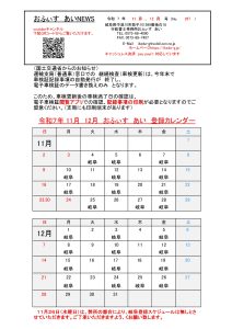 2025.10.31 お知らせ 【11月・12月】事務所ニュース・登録予定日のお知らせ 2025年11月・12月のおふぃす あいニュースです。 登録予定日は、下記カレンダーにてご確認ください。宜しくお願いいたします。 お知らせ 事務所 新名称のご連絡前の記事